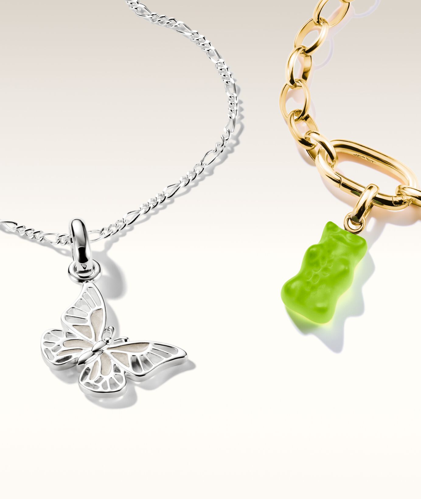 Life is full of moments you want to remember forever. THOMAS SABO charm necklaces let you carry these memorable moments with you day after day. Choose your silver or golden charm necklace and add your highly symbolic charms, your perfect memories: ‘wow’ effect guaranteed. Perhaps a charm reminds you of someone special in your life, a favourite place, or a symbolic event. The charms’ strong lobster clasp fastens them securely to the charm necklace, letting you combine and swap them as your mood changes. Is your favourite a minimalist design in warm 750 yellow gold or rosé gold-plating or a distinctive link chain – the wide range of charm necklaces makes it easy to create your perfect, individual look. The perfect complement: charm carriers to integrate into the chains – stylish attachments for your symbolic charms.
