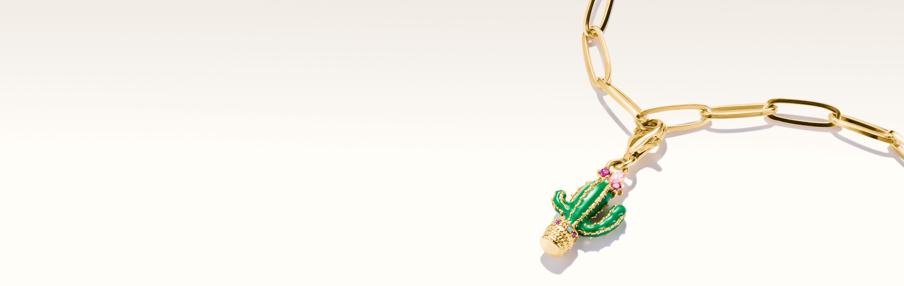 - Sparkling: carriers with hand-set stone and zirconia embellishments are the perfect choice for glittering evening looks. Team them with minimalist or sparkling charms. Whichever you choose, these pieces simply exude glamour and sophistication. The glistening carriers also underline the precious meaning of the charms they carry.